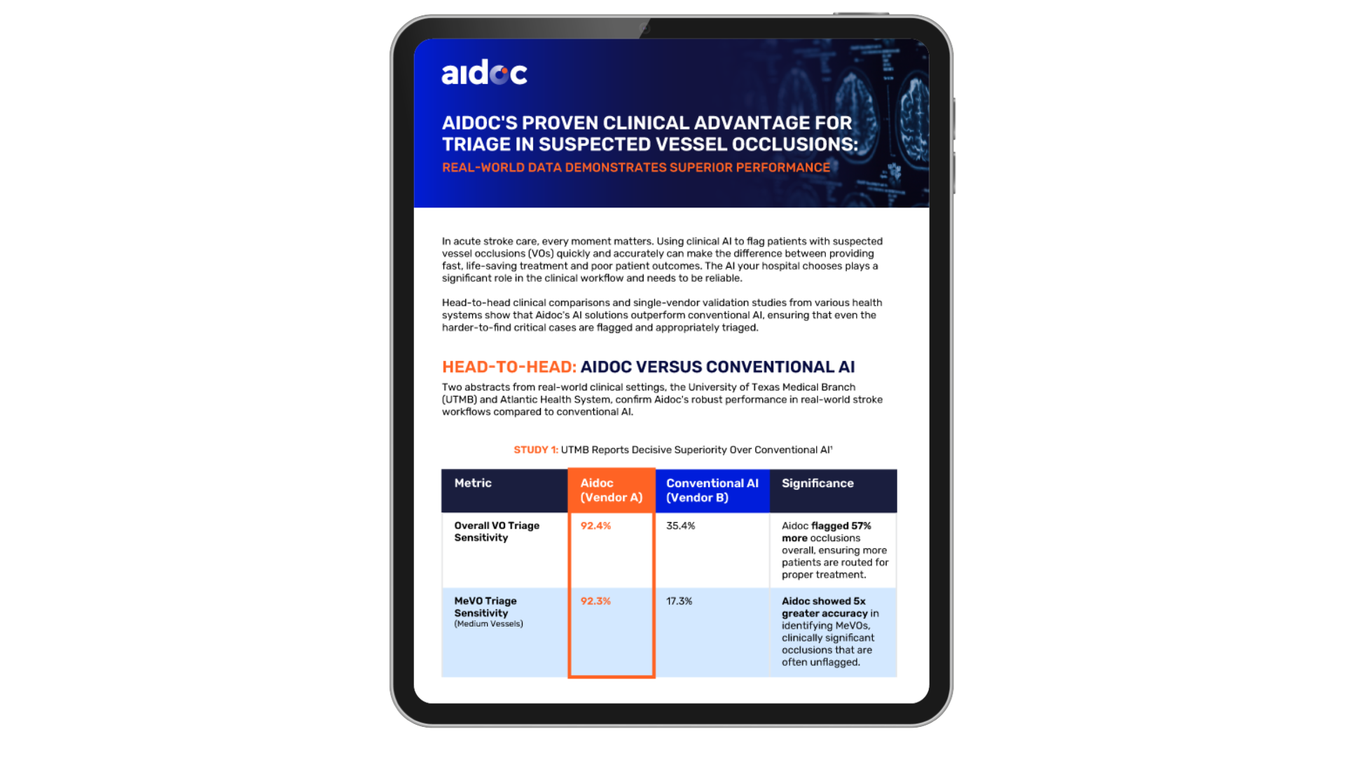 Head-to-head clinical comparisons and single-vendor validation studies from various health systems show that Aidoc’s solution outperforms clinical AI.
