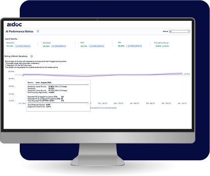 aiOS supports existing governance by providing validation, drift detection, override tracking and analytics that fit seamlessly into organizational and regulatory frameworks, while Aidoc Analytics delivers real-time visibility into performance, adoption and impact.